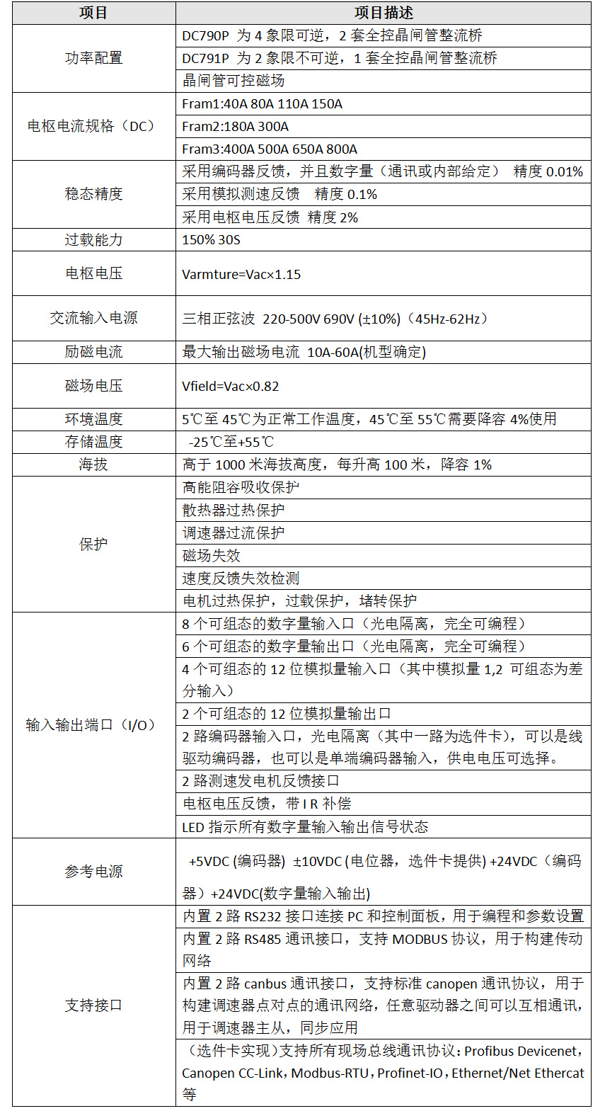 通訊選擇:Profibus,Canbus,Canopen,Anybus,Modbus(RS485,RS232)增量式編碼器,Sin/cos編碼器,測速電機反饋接口